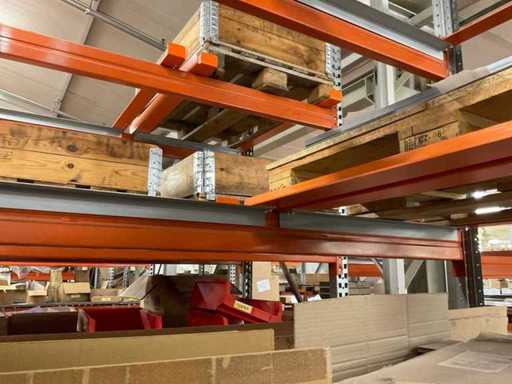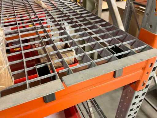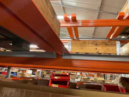 Zware plank bestaande uit: 4 staanders ca. 1100x3300mm, 30 spanten ca. 3600mm, inclusief pallethouders, inclusief gaasplank, met inhoud