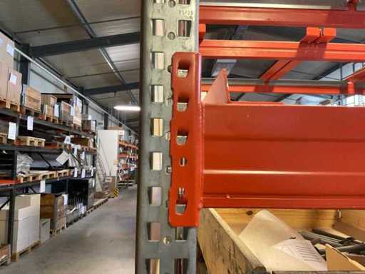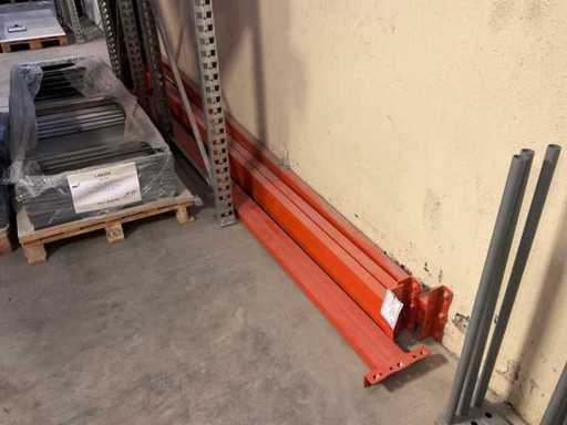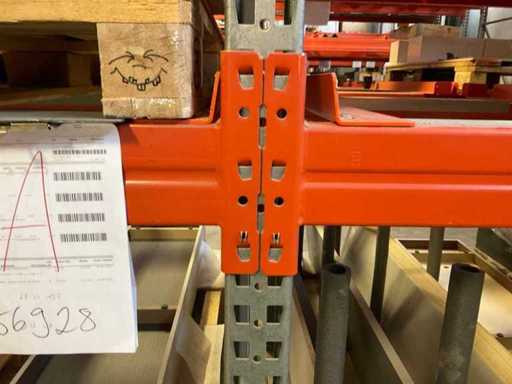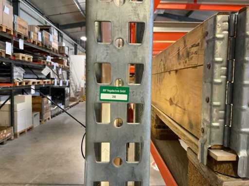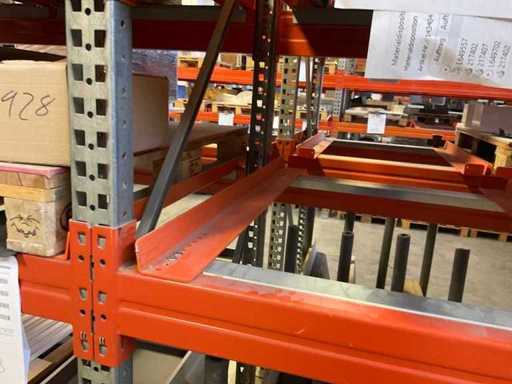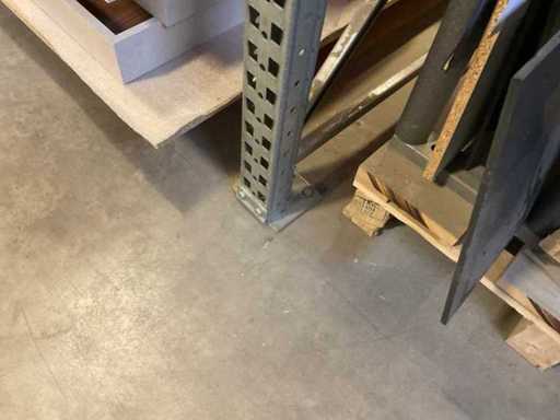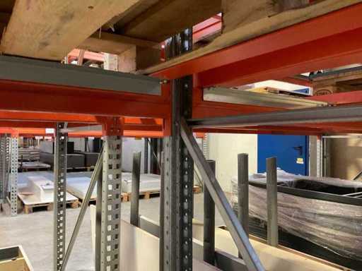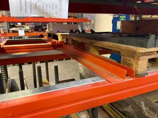 Zware plank bestaande uit: 3 staanders ca. 1100x3300mm, 16 spanten ca. 3600mm, inclusief pallethouders, met inhoud