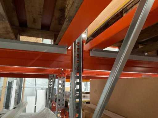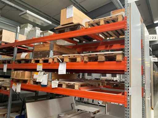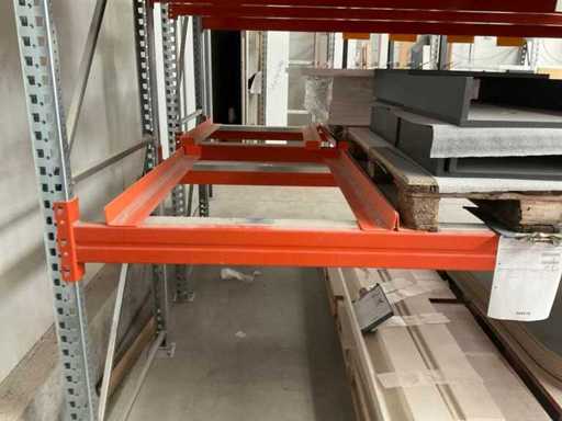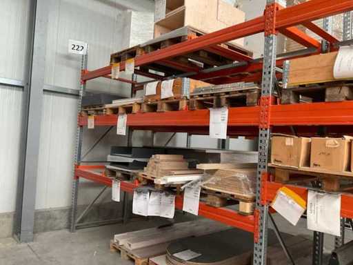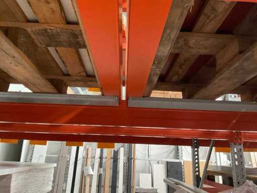 Zware plank bestaande uit: 3 staanders ca. 1100x3300mm, 12 spanten ca. 3600mm, inclusief pallethouders, met inhoud