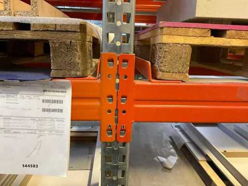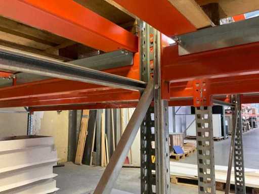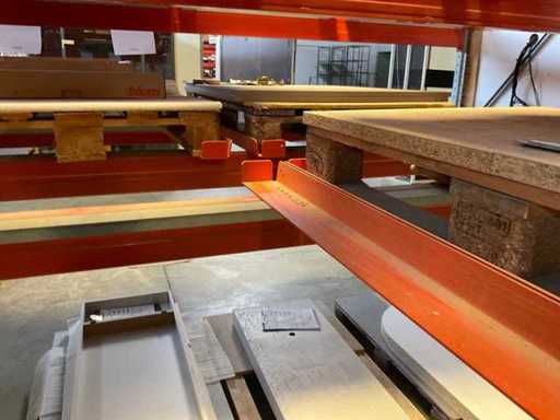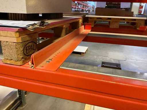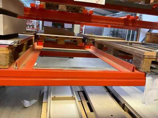 Zware plank bestaande uit: 3 staanders ca. 1100x3300mm, 12 spanten ca. 3600mm, inclusief pallethouders, met inhoud