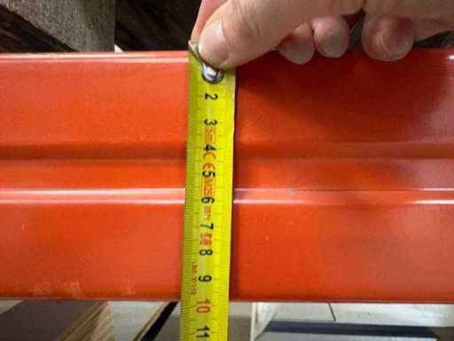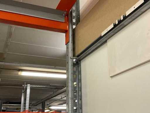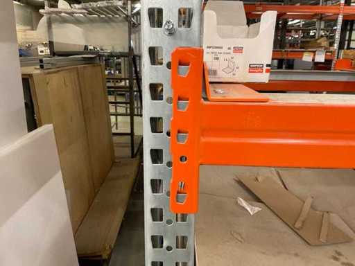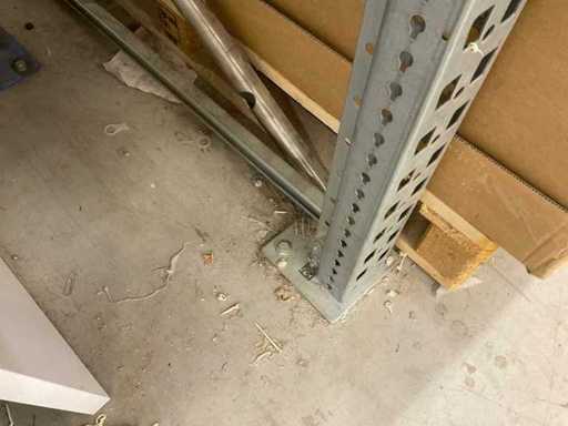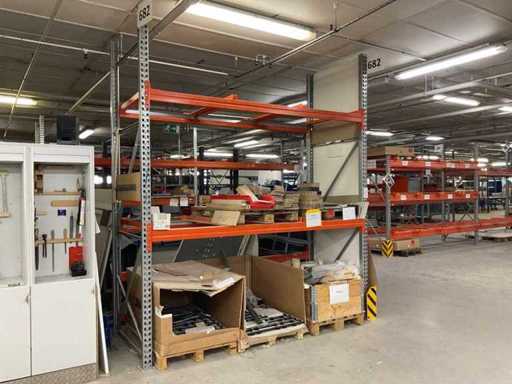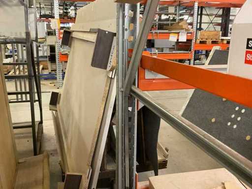 Zware plank bestaande uit: 2 standaards ca. 1100x3300mm, 5 vakwerkwerkten ca. 2700mm, inclusief pallethouders, met inhoud
