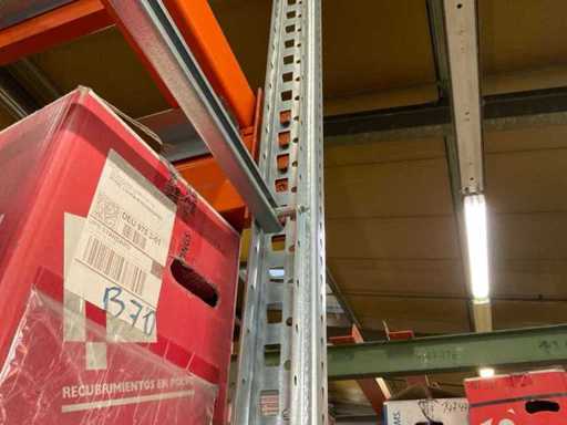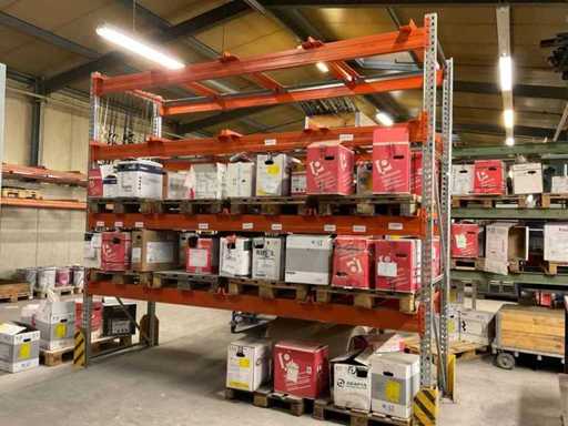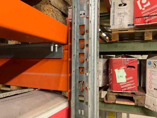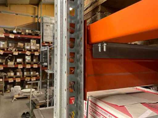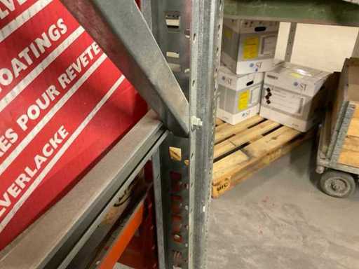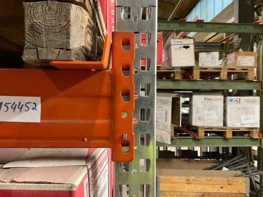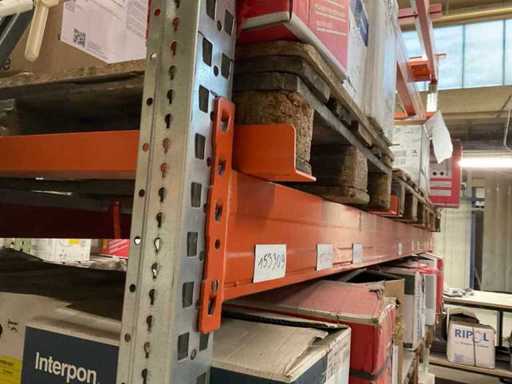 Zware plank bestaande uit: 2 standaards ca. 1100x3300mm, 8 spanten ca. 3600mm, inclusief pallethouders, met inhoud