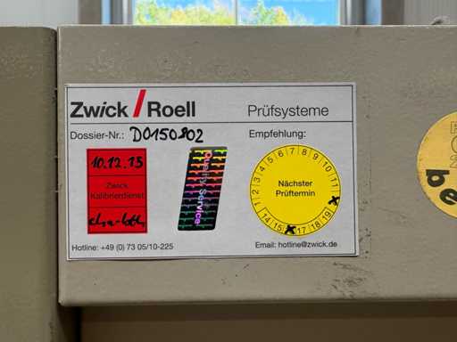 • Kalibratie: Laatste kalibratie door de Zwick-kalibratiedienst op 10-12-2015