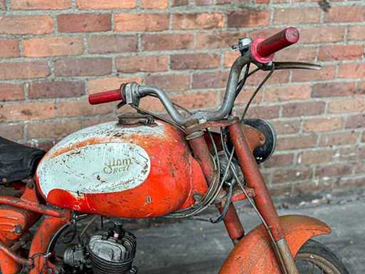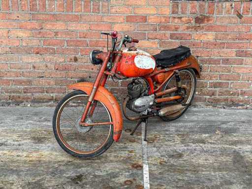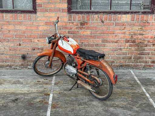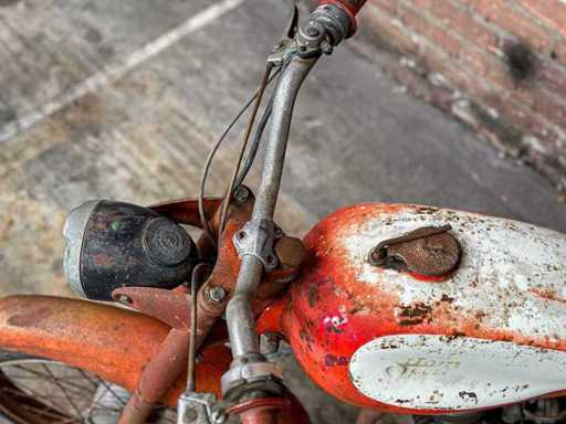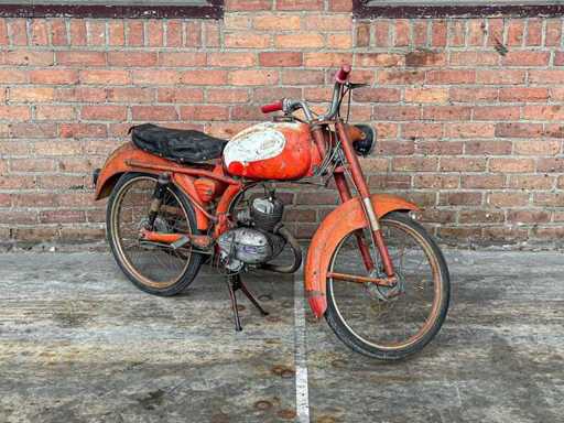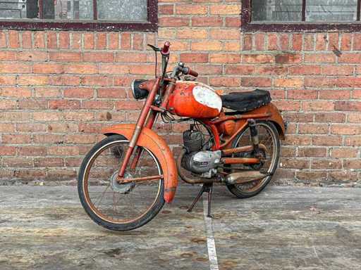 Dit kavel maakt deel uit van een bijzondere privécollectie van klassieke motoren, brommers en fietsen. Het wordt verkocht zoals het is (‘as is’). De beschikbare informatie over de staat van het object is beperkt. Bieders hebben een verregaande onderzoeksplicht en worden nadrukkelijk aangeraden het kavel vooraf te inspecteren. De verkoop vindt plaats zonder garantie en zonder retourrecht. n.s.u. CAVALLINO 1973 Bromfiets, 27-FZV-9