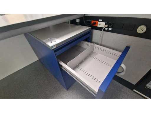 Werkstation bestaande uit een bureautafel plus een verlengstuk, een bureaustoel en het Lista Office-lichaam