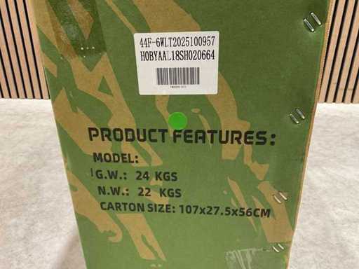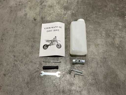 Voorzien van 49 cc, 2-takt benzinemotor luchtgekoeld; 3,5 pk; Trekstart; Transmissie: Automatische koppeling, kettingaandrijving; Mengsmering 2-takt; Top-snelheid: 40 km/u met snelheidsbegrenzers; Stalen buizenframe; Voor & achter schijfremmen; Voorvork + achter schokbrekers; Zithoogte: 55 CM; Max. laadvermogen: 60 kg; Gewicht: 22kg; Ongebruikt in doos (Transport 107x27.5x56cm, Gewicht 24kg)