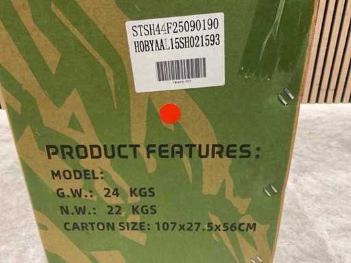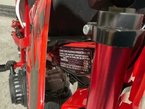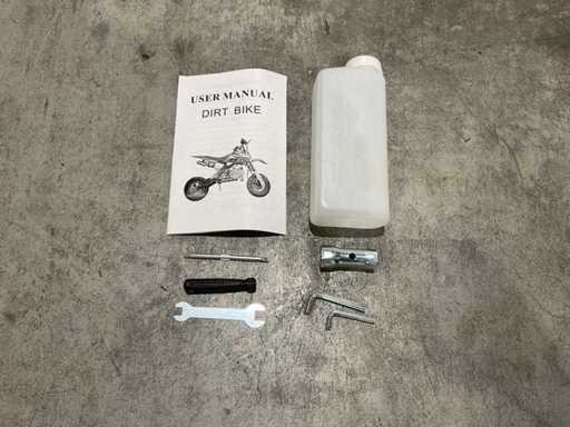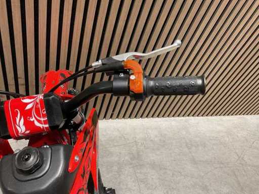 Voorzien van 49 cc, 2-takt benzinemotor luchtgekoeld; 3,5 pk; Trekstart; Transmissie: Automatische koppeling, kettingaandrijving; Mengsmering 2-takt; Top-snelheid: 40 km/u met snelheidsbegrenzers; Stalen buizenframe; Voor & achter schijfremmen; Voorvork + achter schokbrekers; Zithoogte: 55 CM; Max. laadvermogen: 60 kg; Gewicht: 22kg; Ongebruikt in doos (Transport 107x27.5x56cm, Gewicht 24kg)