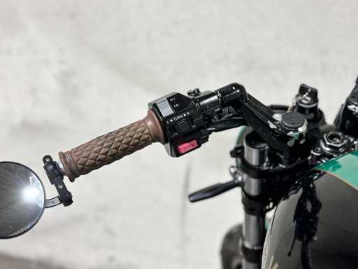 Deze motor is omgebouwd tot café racer, waarbij veel werk is verricht om het huidige resultaat te bereiken. De motor start en rijdt goed.