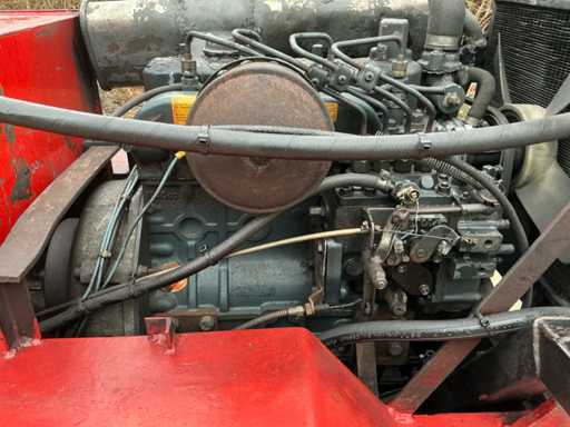 Dostarczono: maszynę do marginesu, widelca paletowe 1100mm, łyżkę 950mm, zacisk belowy 4 zęby, szerokość 800mm, mechaniczny szybkozłącznik, 2 zawory, torebkę, ręczny hamulec, drążek holowniczy k50, przeciwwagę, silnik Kubota v1100, napęd i pracę, okazjonalne zacięcia, problem z dieslem