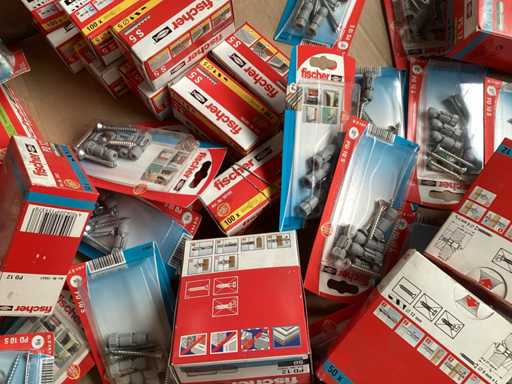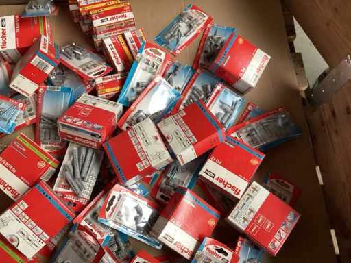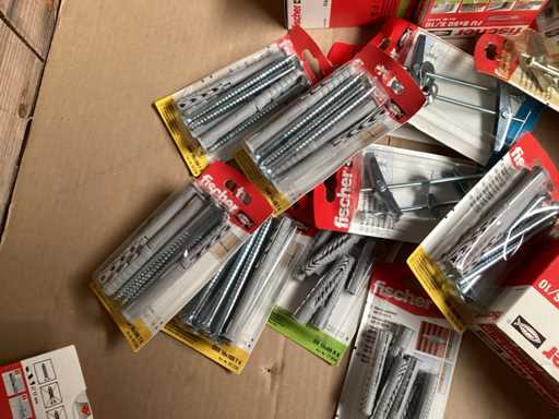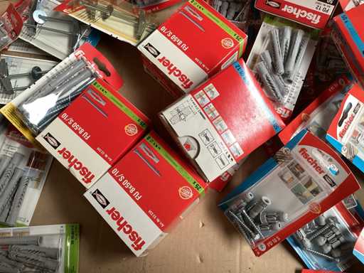 Różne materiały montażowe w opakowaniu blistrowym. Kołki, kotwy, zaciski