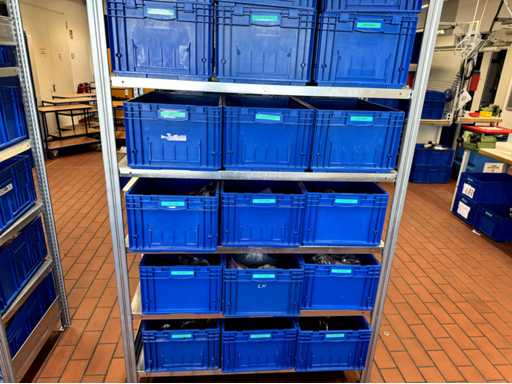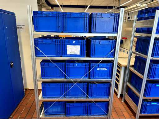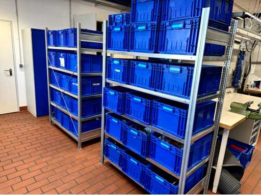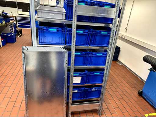 W sumie 4 sztuki, każda z 4 półkami, całkowicie bez zawartości, tworzą