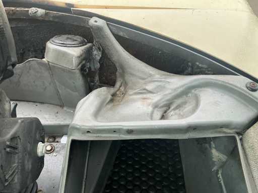 Ma uszkodzenia od ognia, jest w linii paliwowej i przekaźniku zasilania. Silnik pracuje. Pęknięty do przodu, tylna szyba brakuje.