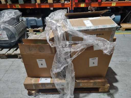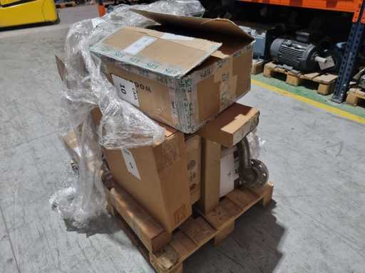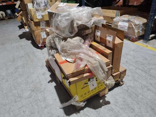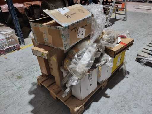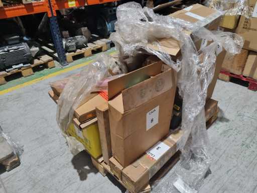 Partia składająca się z różnych części zamiennych, akcesoriów i komponentów przemysłowych od różnych producentów i referencji.