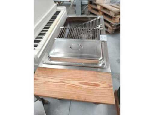 Grill ze stali nierdzewnej z wbudowanym bain-marie na 4 obrotowych kołach, z których 2 są hamowane za pomocą 3 krat ze stali nierdzewnej