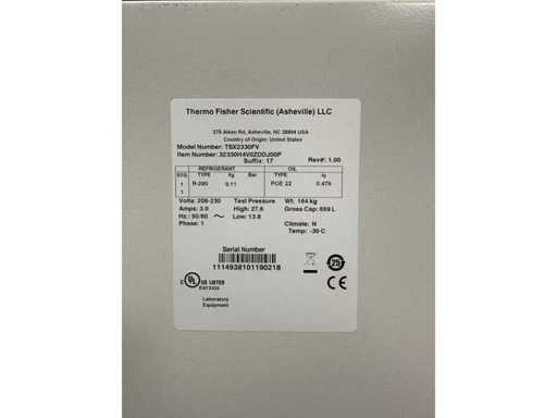 The Thermo Scientific™ TSX Series high-performance freezers with automatic defrost at -30°C are equipped with features that support sample protection and sustainability goals for the storage of reagents, pharmaceuticals, vaccines, biological and other commonly used laboratory and clinical materials such as primers and siRNA molecules, and fetal bovine serum (FBS) that requires a temperature of -30°C. The V-Drive technology of the series is designed to ensure a uniform temperature that continuously adapts to user habits, thus enabling significant energy savings. Certified to the NSF/ANSI 456 standard for vaccine storage. Monitoring sensor available (temperature documentation, for connection to the building management system) Specifications Type: