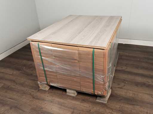 Wysokiej jakości podłoga laminowa, grubość 8 mm, wyposażona w system klik, łatwa do połączenia z ogrzewaniem podłogowym, odporna na zarysowania i zużycie, antypoślizgowa, łatwa w czyszczeniu, ciepła i komfortowa, 52 opakowania po 1,99 m2
