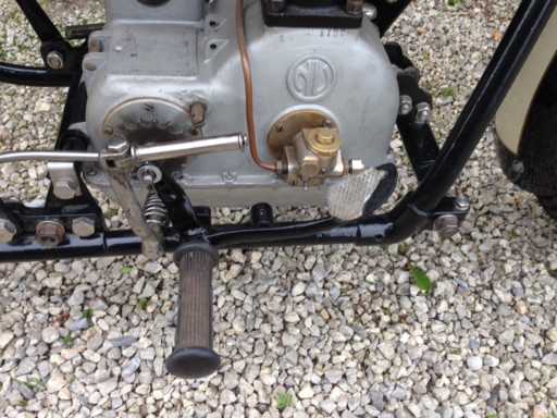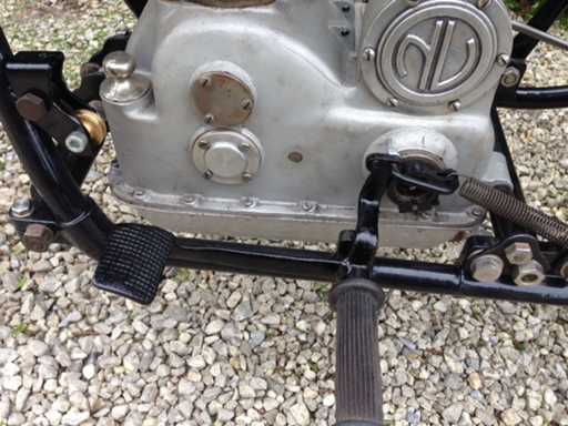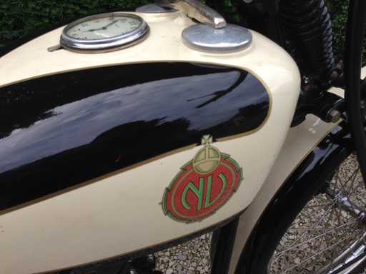 NV (Nymans Verkstäder) was founded in 1873 by Anders Frederik Nyman in Uppsala, Sweden. In the early 1900s they sold motorcycles of the brand Clement, NSU, Indian, etc. NV was a specialist in "Badge Engineering", i.e. they bought motorcycles from another brand and hung their emblems on them and sold them under NV. The other way around also happened, so they sold two-wheelers and outboard motors under the name Cresent. Cresent two-wheelers was later taken over by Monark and the outboard motors were sold to Volvo in 1973 who still make them in the old NV factories in Uppsala. In 1926 they released their own motorcycle with a purchased Eiber engine (Svensk motorindustri in Örkelljunga). In 1928 they released their own engine. It was designed by a Göran Rödén who came from FN (Belgium) and had worked on the development of the M60 engine, a 350cc OHV. This is the reason that this engine looks very much like the FN M60 and M67 at first sight. Initially this engine (250cc OHV) was in their old flattanker model but in 1929 they release a new model that is specially made for the 6 day races to promote the NV brand. It was the first model with a saddle tank and it had the 2 quick-fill caps and an 8-day movement. Very few of this model were made and only 1 is known! This is an unfinished restoration. The engine has been completely and professionally overhauled. No papers.