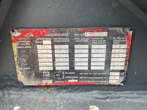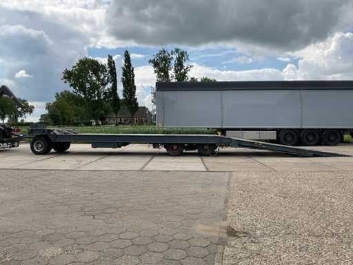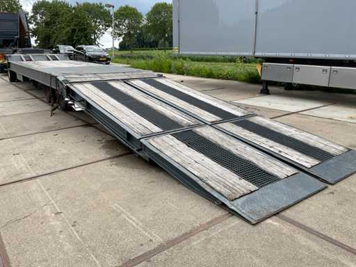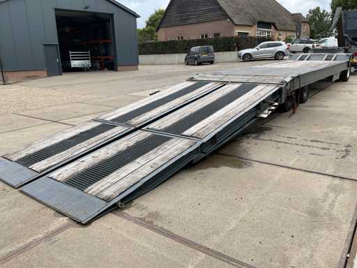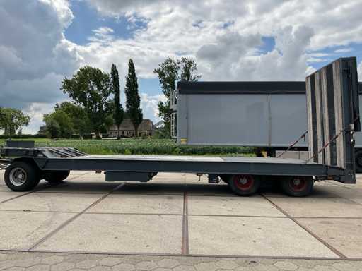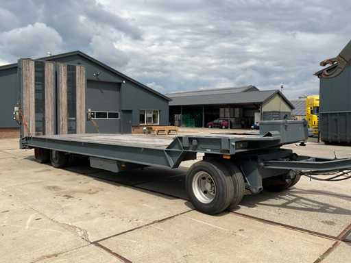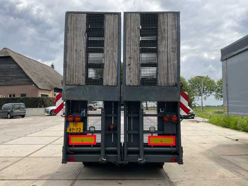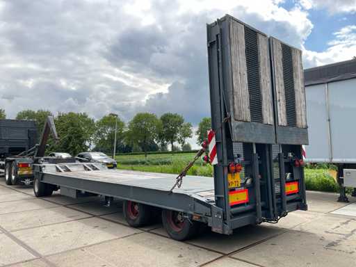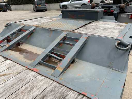 Rok budowy 1987, Maksymalna masa: 28000kg, Masa własna: 7140kg, Typ przyczepy: Przyczepa, Długość całkowita: 10800mm, Szerokość: 2490mm, Długość dolnej części 7500mm, Długość na szyi: 1000mm, Wysokość załadunku dolnej części: 900mm, Wysokość załadunku na szyi: 1140mm, Wyposażona w: rampy hydrauliczne / rampy z własnym układem hydraulicznym (4900mm), Oświetlenie LED, oświetlenie robocze, drewniana podłoga ładunkowa, Holenderska rejestracja rejestracyjna, 3 osie, dokręcanie ucha holowniczego (sworzeń 40mm), hamulce pneumatyczne, resory piórowe,