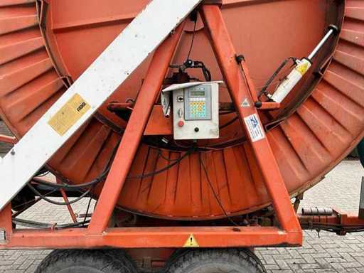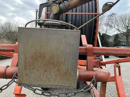 equipped with spray nozzles (0.9/1.0/1.1), hydraulic operated arm with suction hose + suction basket, tandem chassis, slewing ring, spray table, VT 100 spray computer, retraction speed adjustment, Caprari PTO driven irrigation pump, headland sprinkler,