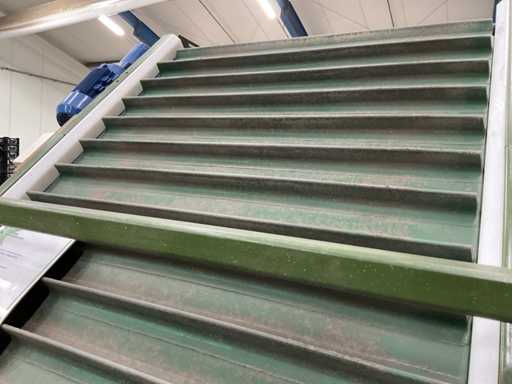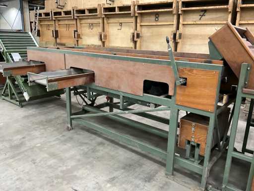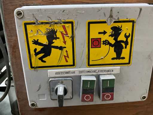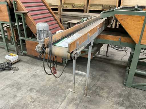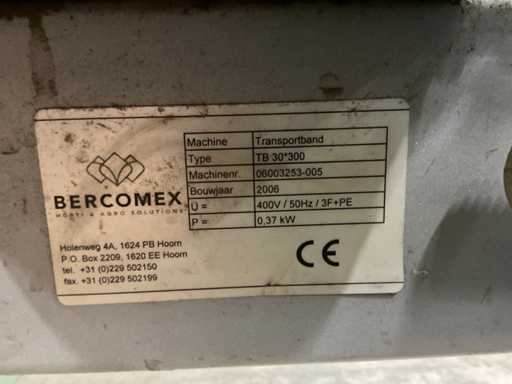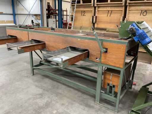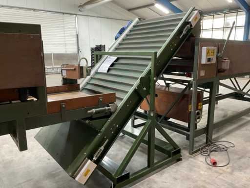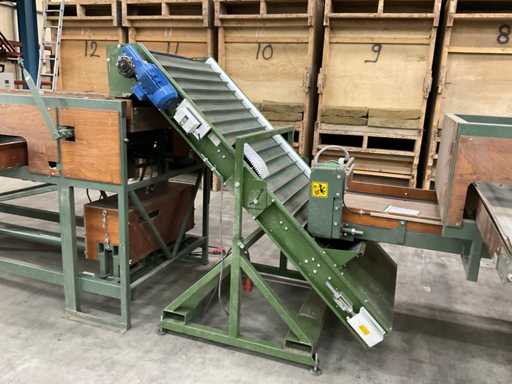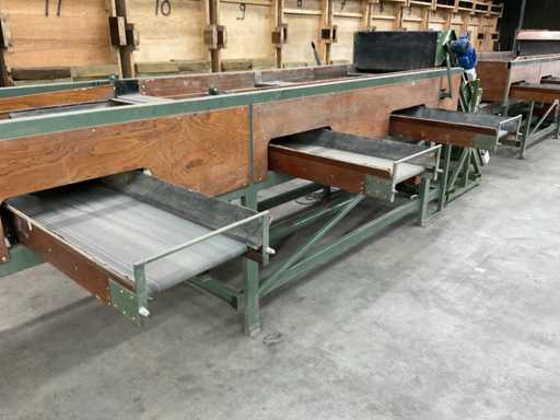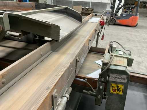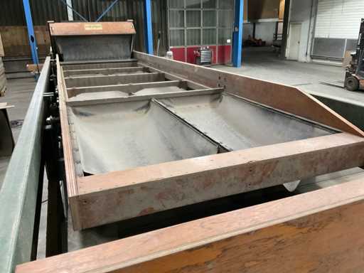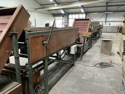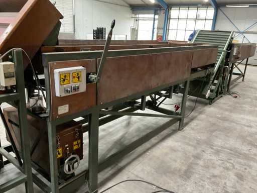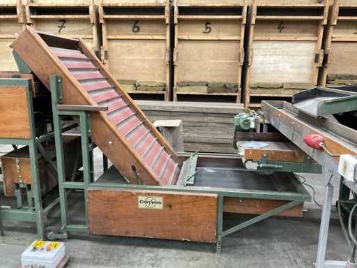 Consisting of 1x Compas ES sorting machine with 3 sorting compartments of 1000x600mm and TBU unloading conveyor, 1x Bercomex TB30x300 conveyor belt, 1x Compas elevator, 1x Compas ES sorting machine with 3 sorting compartments with 1x unloading conveyor and 2x cross conveyor belt, 1x Schouten Bercomex EL215/10 elevator, 1x Compas ES sorting machine with 3 sorting compartments and 3 cross conveyor belts, 74 sorting plates with sieving sizes 4 to 14 in various versions, Central start-up control box