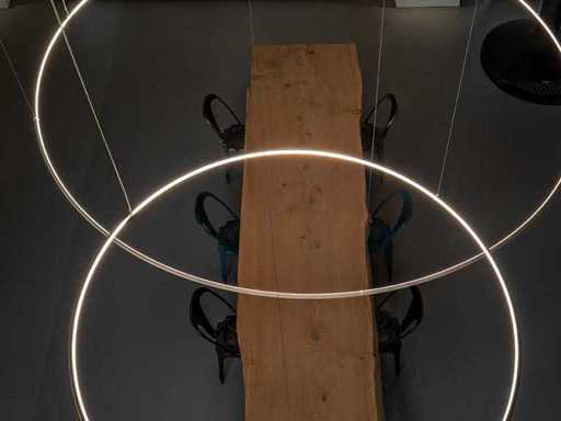 Aurora 120 w kolorze czarnego, odpowiednia do pomieszczeń recepcyjnej, miejsc spotkań, warsztatów lub salonu, ale także do salonu, loftu lub innych przestrzeni mieszkalnych i roboczych. Składa się z 2 oddzielnych obracanych i przechylających pierścieni, wyposażonych w opalowe, ciepłe białe źródło światła LED. Dzięki elastycznej regulacji wysokości można szybko i łatwo przechylać lub regulować pierścienie oddzielnie. . Liczba źródeł światła: 1. Wymiary P Element ok: 120 cm x 100 cm x 20 cm Cardan regulowany: Tak. Wiązka światła około 110 stopni. Jasny kolor: Ciepła biel. Połączenie: 230 V. Kolor: matowy Wartość partii: € 1268,- Szczegóły: dla tej partii koszty dostawy wynoszą 65,00 EUR netto dla Belgii + Holandii, dostawa odbywa się po wcześniejszym umówieniu się