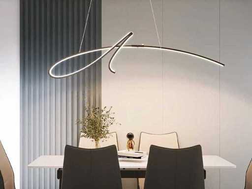 Oprawa Signé LED w kolorze srebrnym, oprawka wisiorkowa, nadaje się do użytku w salonie, w gabinecie, w sypialniach, ale także w pracowniach, w salonach czy gabinetach konsultacyjnych. Lampa wyposażona jest w ciągłe źródło światła LED z opalu, które daje unikalne światło. Łatwy montaż, elastyczny zestaw zawieszenia do regulacji wysokości. Cechy produktu: Wymiary ok: 1200 x 450 x mm x 1200 mm. Wiązka światła około 170 stopni. Natężenie światła 45 watów: Jasny kolor: Ciepła biel. Połączenie: 230 V. Kolor: Srebrny. To nowy produkt