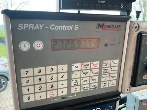 Wyposażony w: zaczep dla ptaków wędrownych, pompę natryskową napędzaną przez WOM, opony Mitas 520/70R38, koła kierowane, hamulce pneumatyczne, światła robocze, światła drogowe, skrzynkę sterowniczą ME Muller Wskaźnik zbiornika 2, zbiornik 3600 litrów, szerokość 34 metrów, szerokość toru 2 metry, kompetentna pompa, 2726,9774 hektarów metrów, 2 lata temu nowy licznik spryskany łącznie około 86000 hektarów, kamera tylna z ekranem,