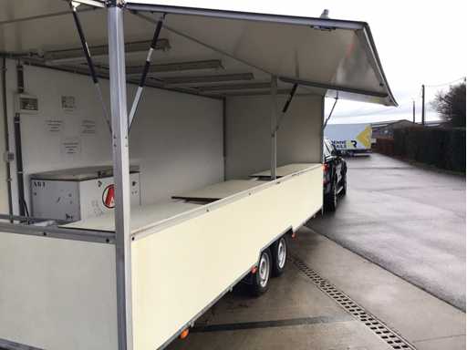 Multifunction trailer equipped with electrical installation, possibility for market, food truck, provide some small repairs to the counter and floor, no key