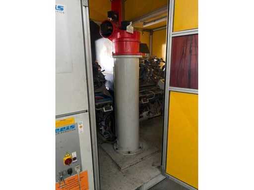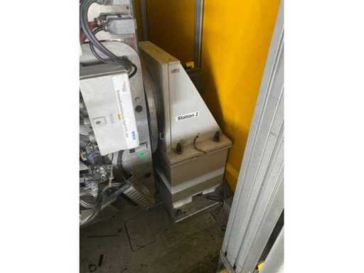 Reis robot RV 20-6, obrotowy stół SRMD 11 C, kompletna kabina/kielnia, 2 x rolety Albany RP 300, bez spawalnicy.
