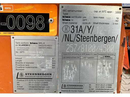 2011 Steenbergen CIE 300 Zbiornik paliwa