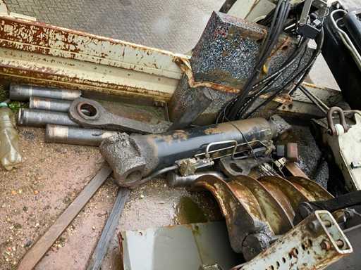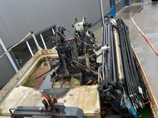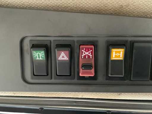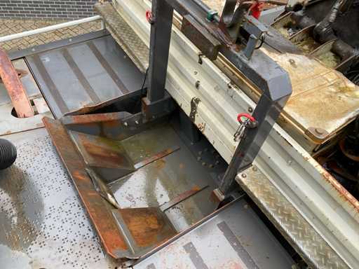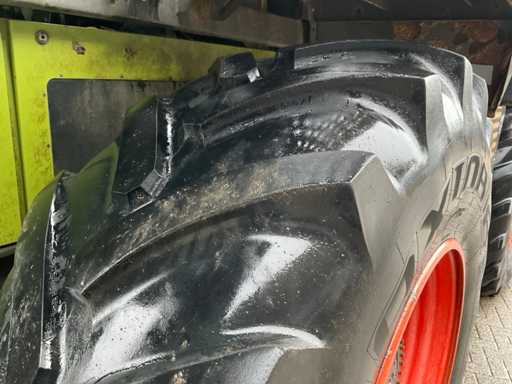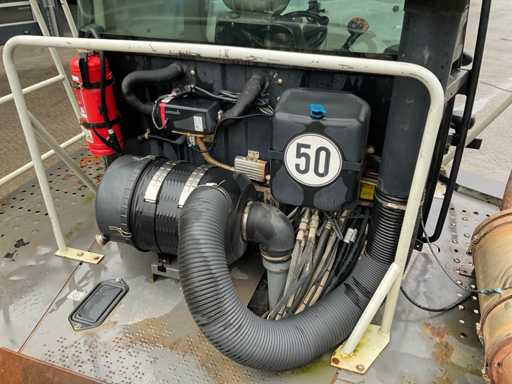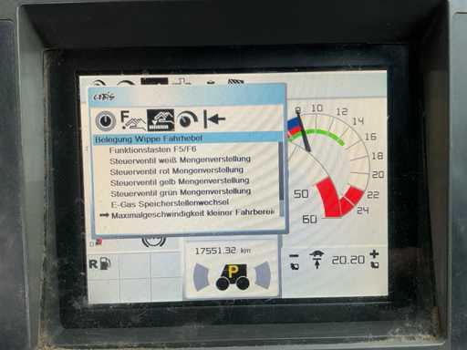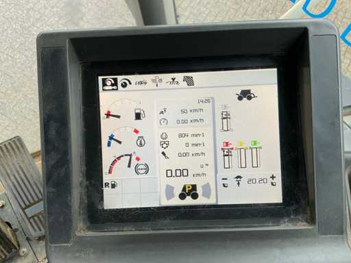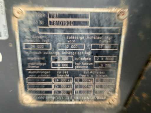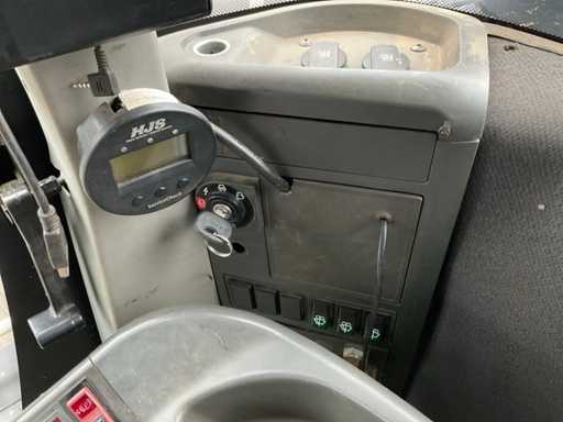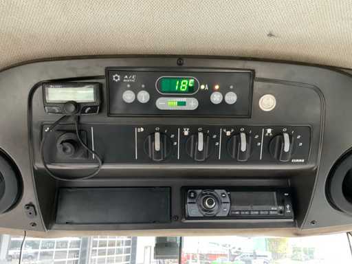 Pneumatycznie zawieszona kabina, nadwozie z dźwigiem załadunkowym z chwytaczem pnia drzewa i bocznymi podsiężnikami, kamera tylna, kierownica na cztery koła, wersja Saddle-Trac, 50 km/h, niemiecka rejestracja