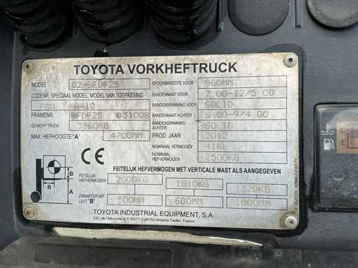 2012 Toyota Tonero 02-8FDF25 Wózek widłowy