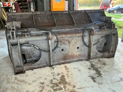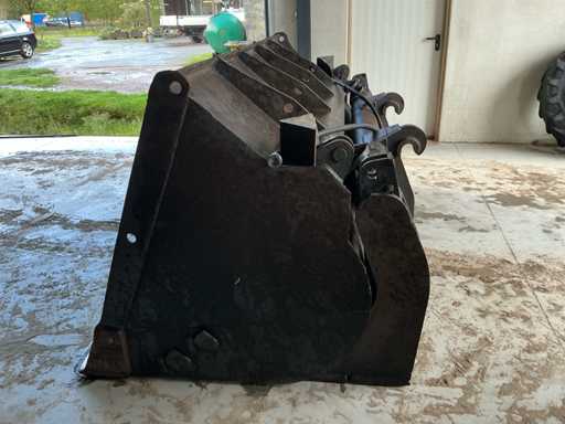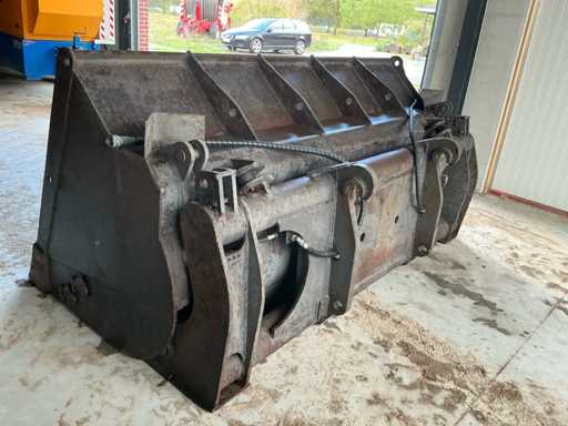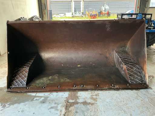 Wyposażony w: nadaje się do podłączenia Volvo L-60 pasuje do standardu Volvo, Ciężka stalowa skrzynia ładunkowa (ok. 2,5 m szerokości, pojemność ± 2,0 m³, waga ± 700 kg) z odkręcanym ostrzem tnącym i przyłączem Volvo, nadaje się do koparki lub ładowarki teleskopowej