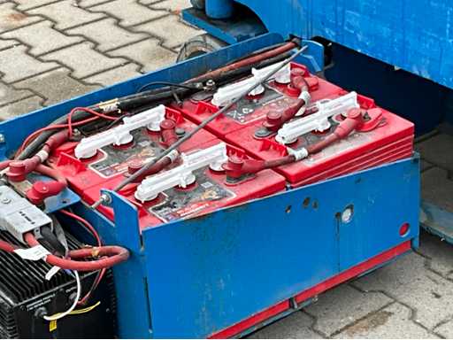 Wysokość podłogi platformy 5800 mm; rozmiar wysuwanej platformy ok. 2540x600 mm; wewnętrzna ładowarka akumulatorów 230 Volt; kontrola klatki; wysokość transportowa około 1750 mm; bez tabliczki znamionowej; warunki pracy;
