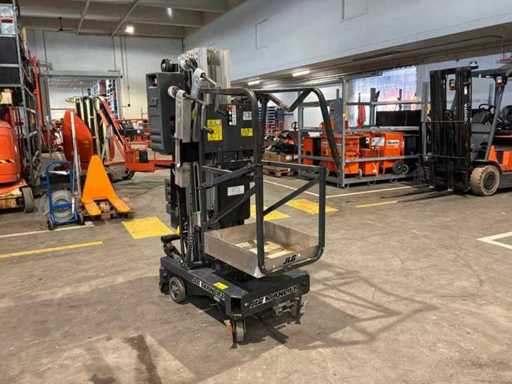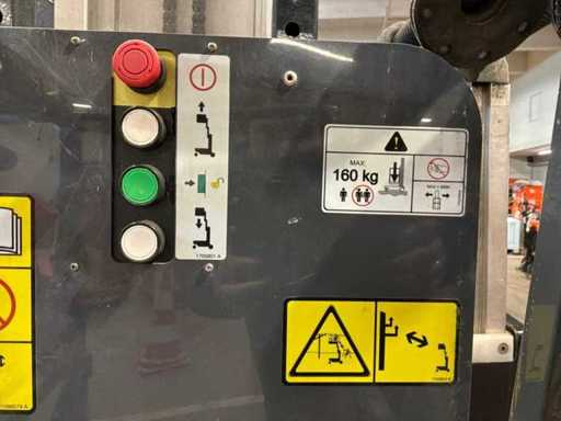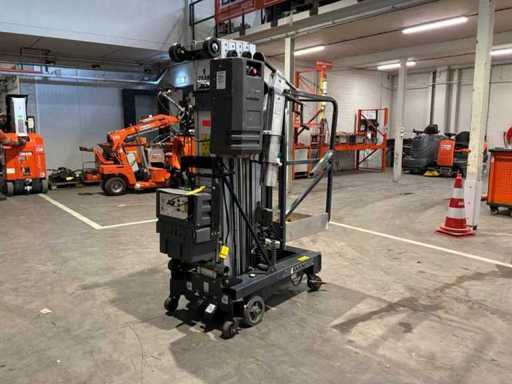 kompaktowy podnośnik pasażerski; wyposażona w 4 regulowane stopy nośne; Zastosowanie: Operacje konserwacyjne/serwisowe/montażowe; Wersja: stal / aluminium; mobilne; 230 woltów; zasilanie sieciowe; bateria 12 V; nie działa; sprzęt do części; uszkodzona platforma; uszkodzona ładowarka baterii;