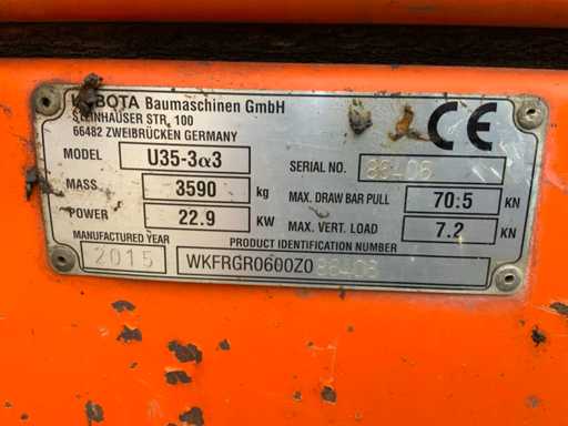 2015 Kubota U35-3A3 Mini koparka Krótka ścieżka