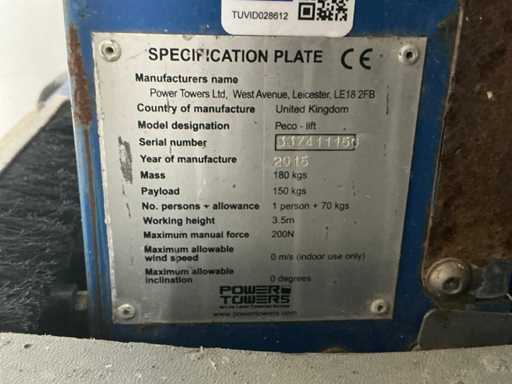 2015 Power Towers Pecolift Passenger Lift 3,5m Manualna