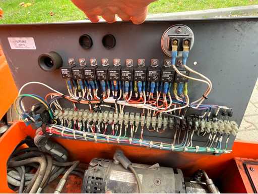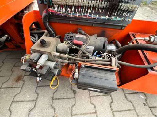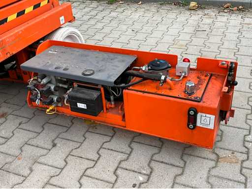 Wysokość podłogi platformy 6100 mm; rozmiar wysuwanej platformy ok. 3020x710 mm; wewnętrzna ładowarka akumulatorów 230 Volt; kontrola klatki; Platforma przyłączeniowa zasilania 230 V; wysokość transportowa około 1750 mm; warunki pracy;