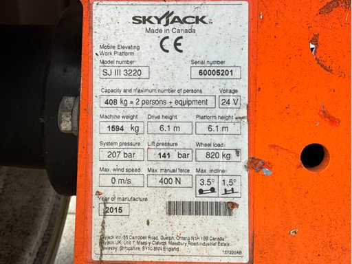 2015 SkyJack SJ III 3220 Platforma koszowa