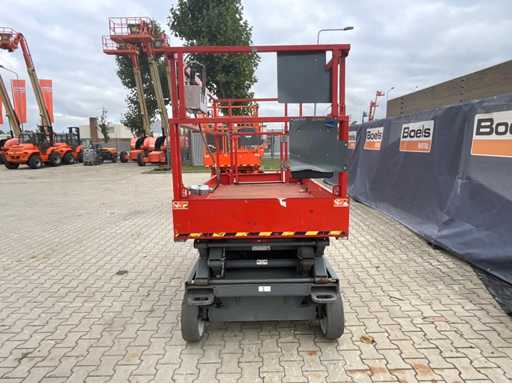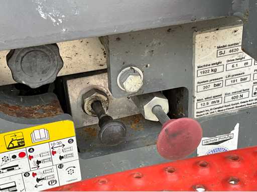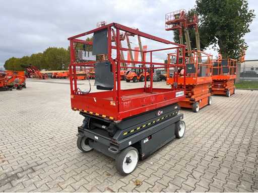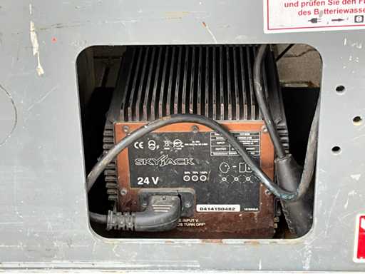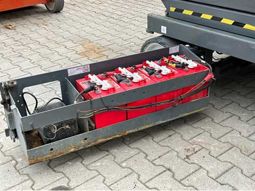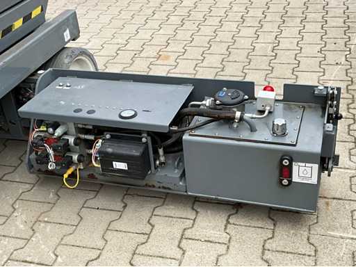 Wysokość podłogi platformy 6100 mm; rozmiar wysuwanej platformy ok. 3350x1070 mm; wewnętrzna ładowarka akumulatorów 230 Volt; kontrola klatki; wysokość transportowa około 1800 mm; warunki pracy;