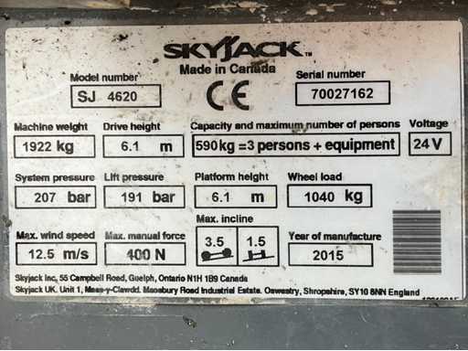 2015 SkyJack SJ III 4620 Platforma koszowa