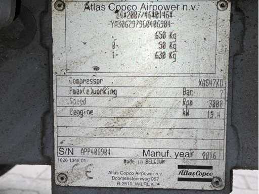 2016 Przyczepa sprężarki Atlas Copco XAS47 KD