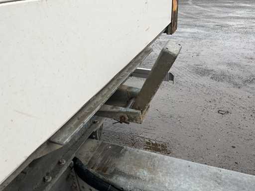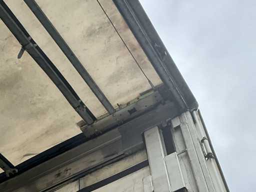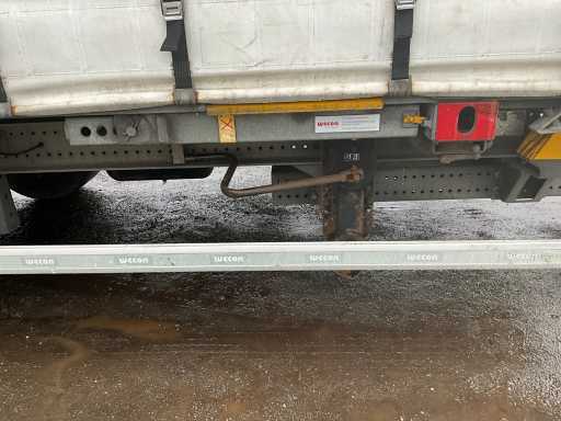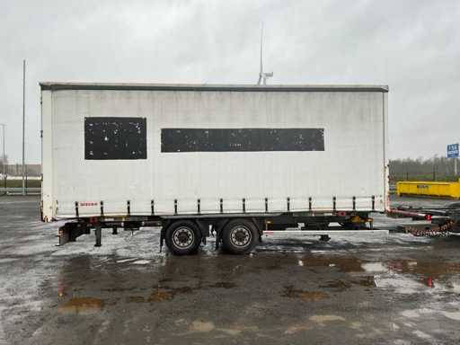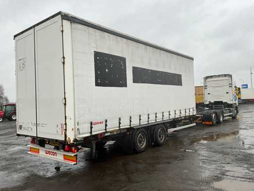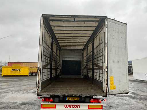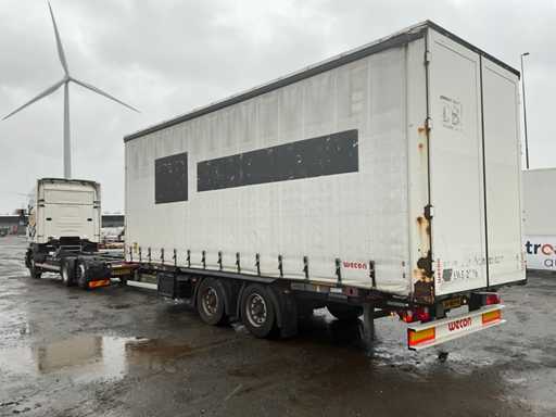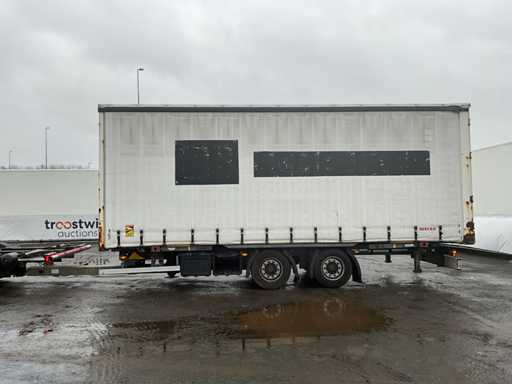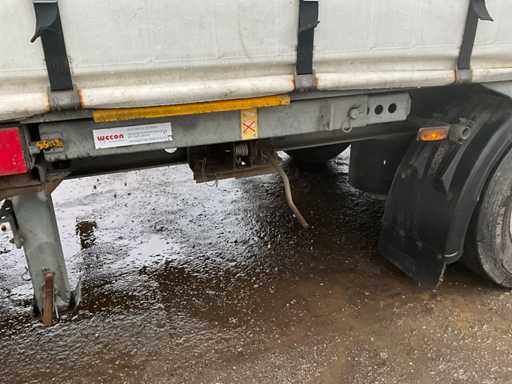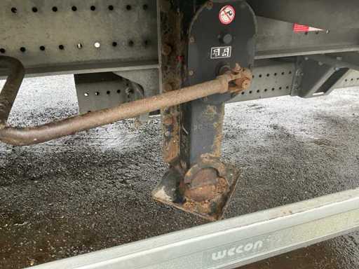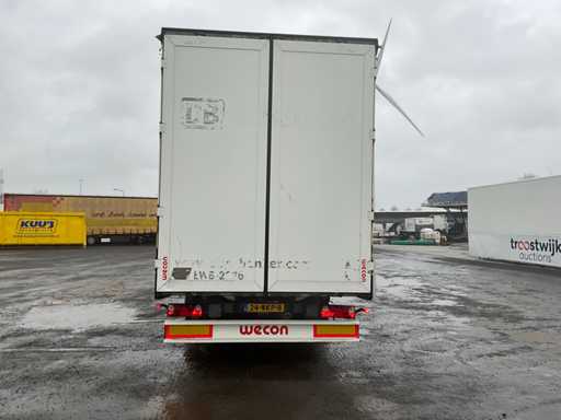 Z 2017 Wecon trailer 20-stopowa przyczepa kontenerowa wyposażona w twistlocki; wyposażony w zamykaną skrzynkę BDF Wecon z baldachimem; wymiar wewnętrzny: 8000x2450x3000 mm; Belki saneczkowe 715mm hoh, z dachem zwijanym / przesuwnym; Dach podnoszony, podwójnie zamykane drzwi z tyłu; Przyczepa z nogami podporowymi przód i tył, Belki ramy 1200mm hoh, wtyczka 15-pin, wtyczka ABS, Duomatic