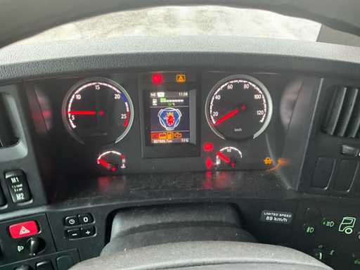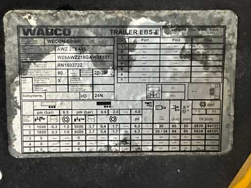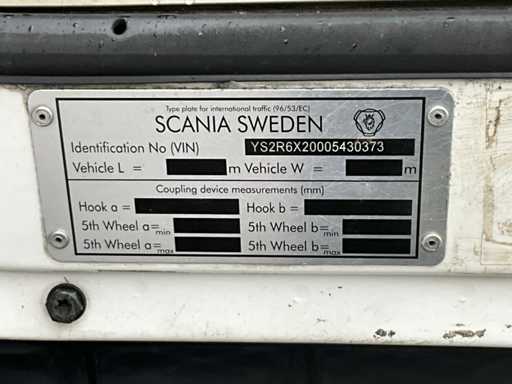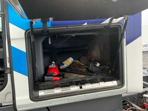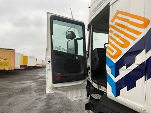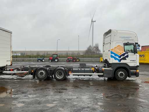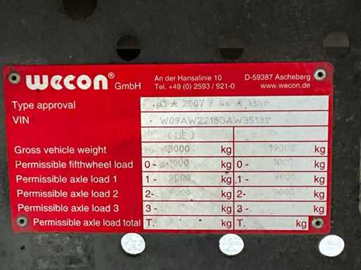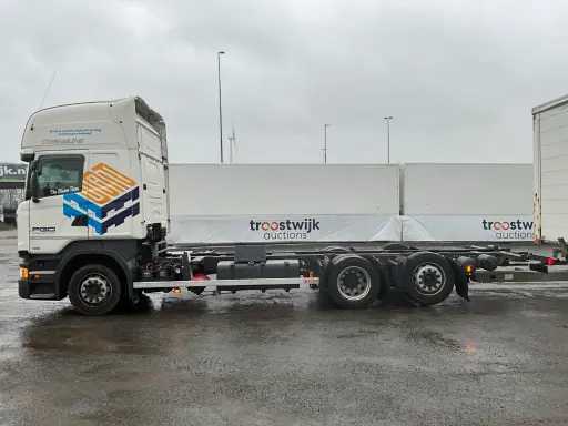 20-stopowa ciężarówka kontenerowa wyposażona w twistlocki i system BDF; 3-osiowy podnoszony; 2-osiowe podwójne opony; zawieszenie pneumatyczne; Szyby; Belki ramy 680mm hoh; kabina 2 koje; wbudowana lodówka; radio; podwójny zbiornik paliwa; Vorlandi Catch Mouth, wtyczka 15-pin, wtyczka ABS, Duomatic