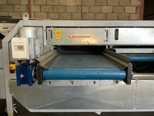 Equipped with 3 discharge belts (belt width 60 cm); total width without discharge belts approx. 185 cm; roller and brush width 120 cm; grading 6 - 69 mm; partly disassembled