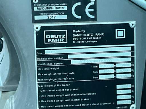 2017 Deutz-Fahr 6215 TTV Agrotron Four Wheel Drive Farm Tractor