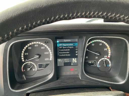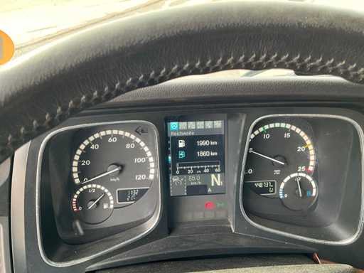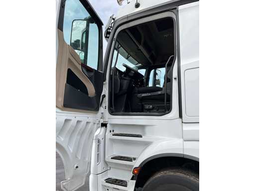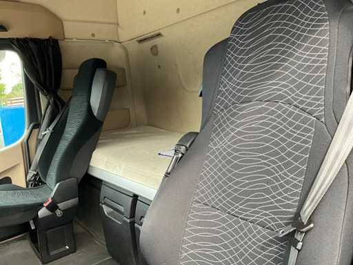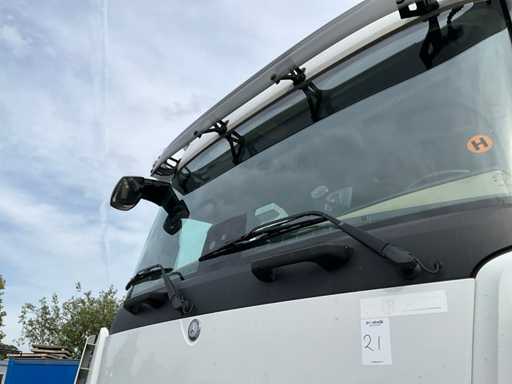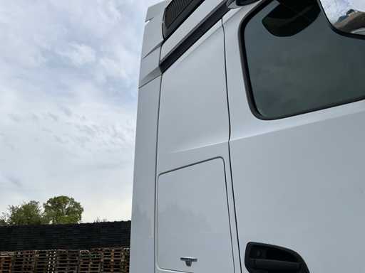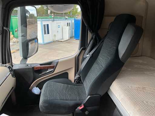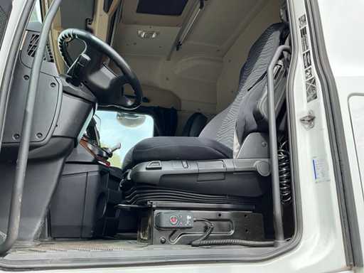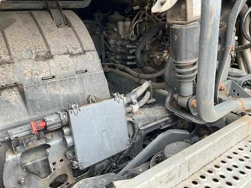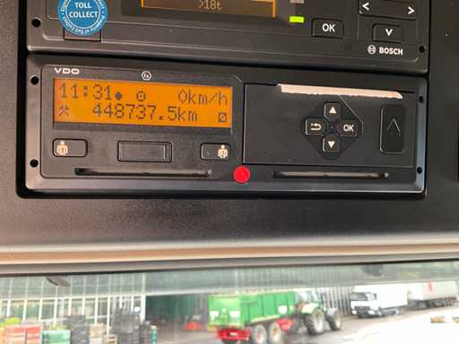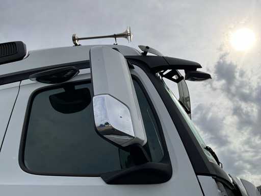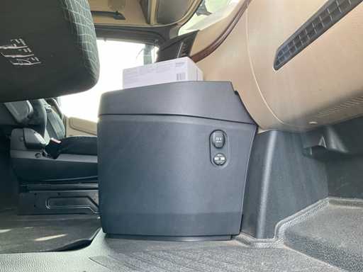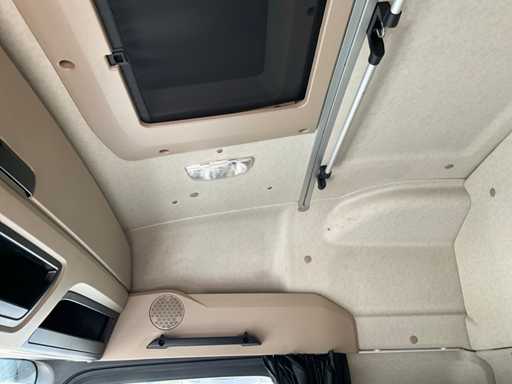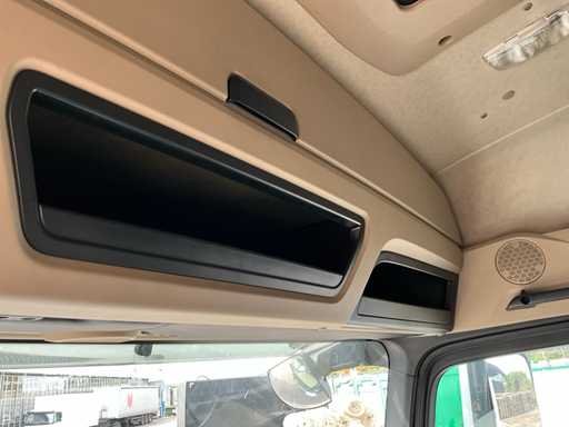 wyposażony w wielofunkcyjną kierownicę, klimatyzację, regulowane zawieszenie pneumatyczne tylnej osi, elektryczne lusterka, tachograf cyfrowy, tempomat, AdBlue, elektryczne okno dachowe, lodówkę, Uwaga! różne uszkodzenia kabiny (osłona lusterka po stronie kierowcy + uszkodzenie po stronie pasażera)