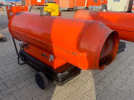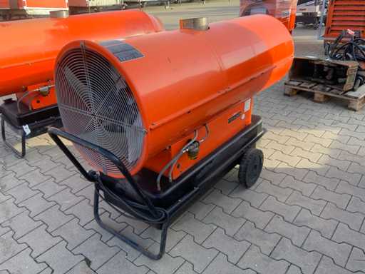 ruchomy; Opalane olejem napędowym; znajdujący się pod spodem zbiornik paliwa; 78 000 kcal / godzinę; 4300 m3/godz.; 7,17 litra oleju napędowego / godzinę; 1140 W; warunki pracy;