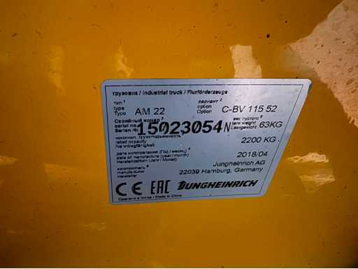 2018 Hydrauliczny ręczny wózek paletowy Jungheinrich AM22