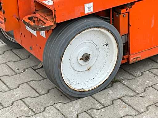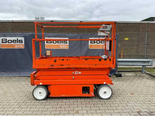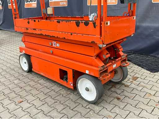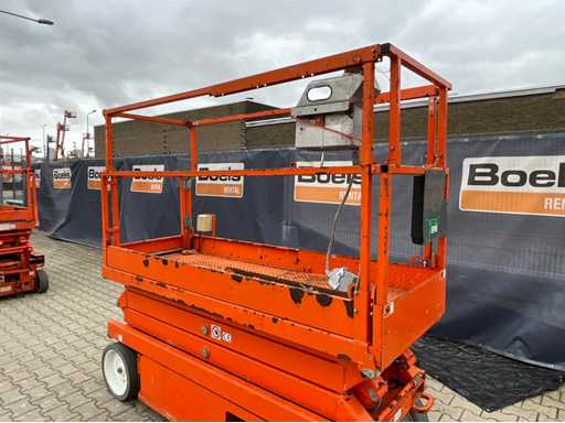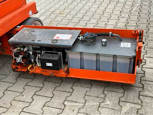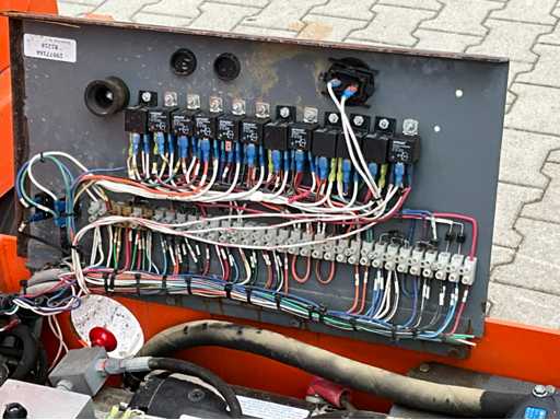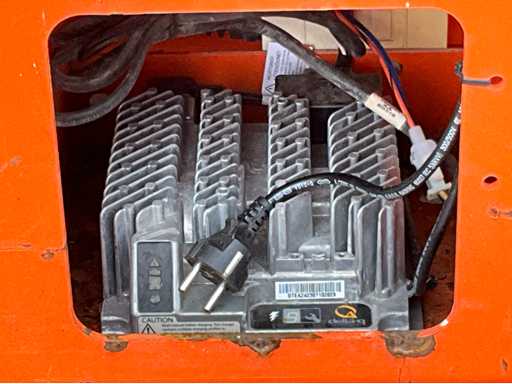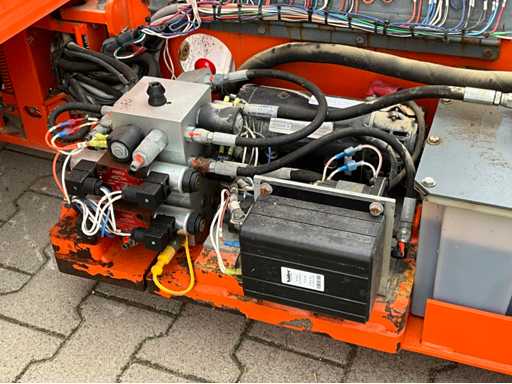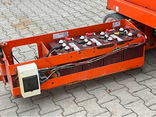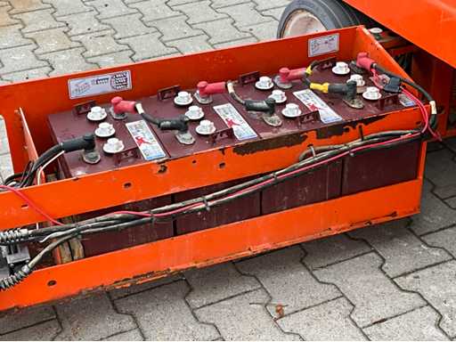 Wysokość podłogi platformy 6100 mm; rozmiar wysuwanej platformy ok. 3020x710 mm; wewnętrzna ładowarka akumulatorów 230 Volt; kontrola klatki; Platforma przyłączeniowa zasilania 230 V; wysokość transportowa około 1750 mm; bez tabliczki znamionowej; Warunki pracy